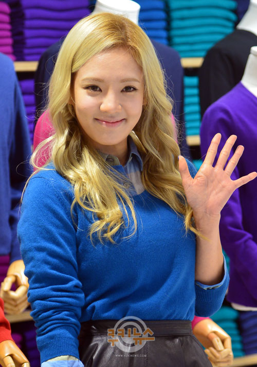 Hyoyeon sa dnes zúčastnila UNIQLO Fall/Winter Silk and Cashmere Press Event v Apgujeong-dong v Gangnam-gu. Na event prišla v čiernej krátkej sukni a modrom svetríku. Na prvý dojem vyzerala ako školáčka (teda bez tých lodičiek a kabelky :D)