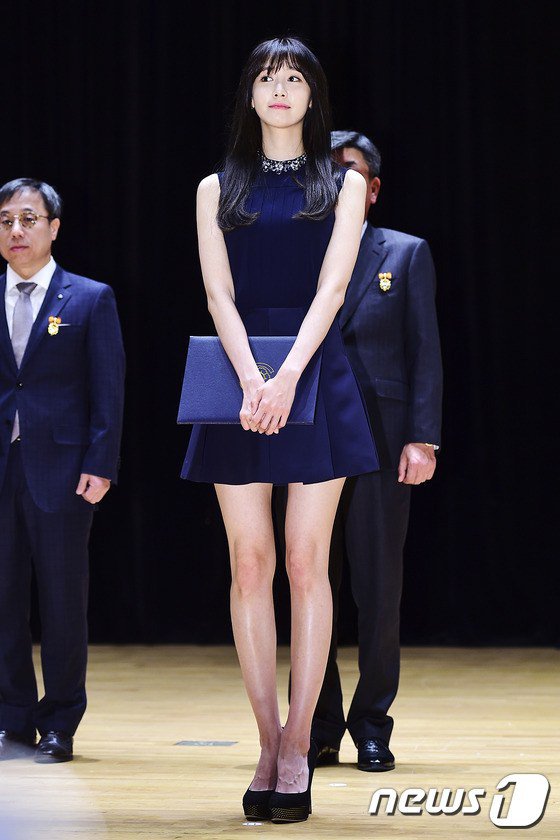 V elegantných modrých šatách sme dnes mohli Yoonu vidieť na '49th Taxpayer's Day'. Spolu